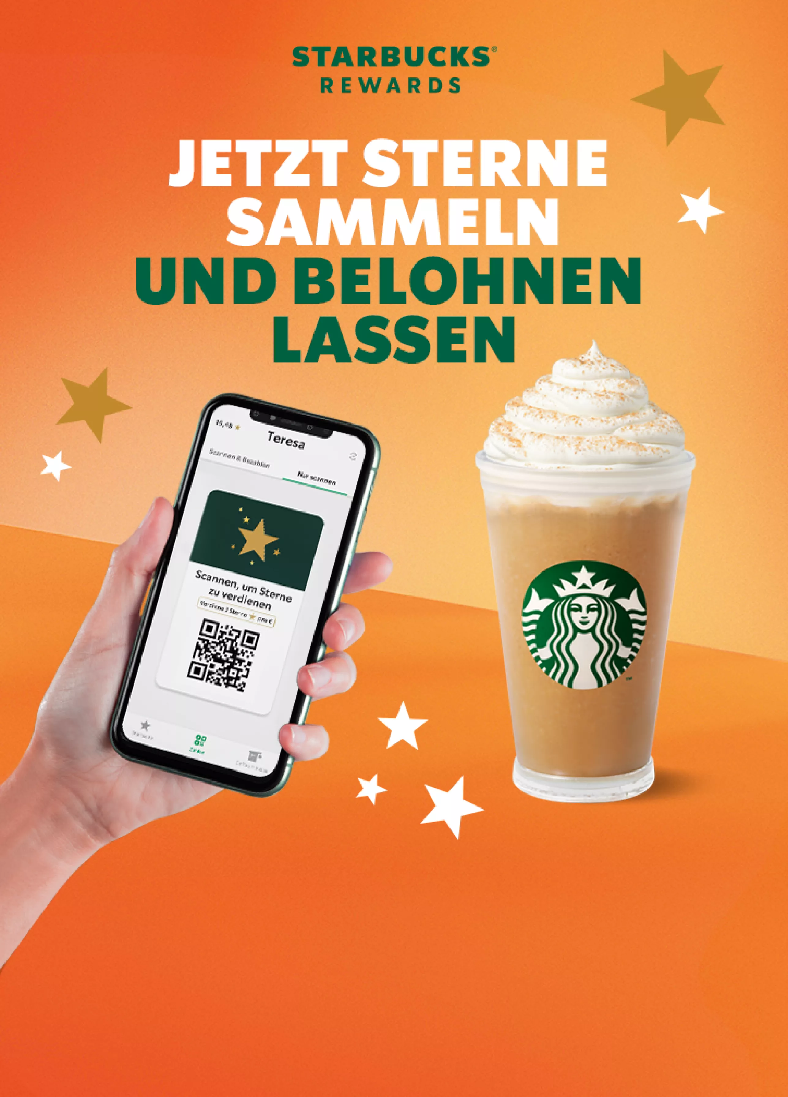 Als Starbucks Rewards Mitglied sammelst du bei jeder Bestellung Sterne, die du ganz schnell in einen Gratis-Drink umwandeln kannst!